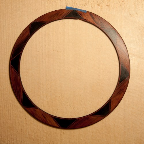 After all is dry the rosette is then sent slowly, with light pressure, through the drum sander to remove excess glue and smoothing