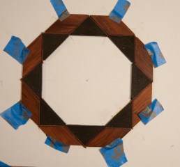 Dry test fit of all parts. Minor adjustments to the 45 and 90 degree pieces are done here with a level sanding block and a square