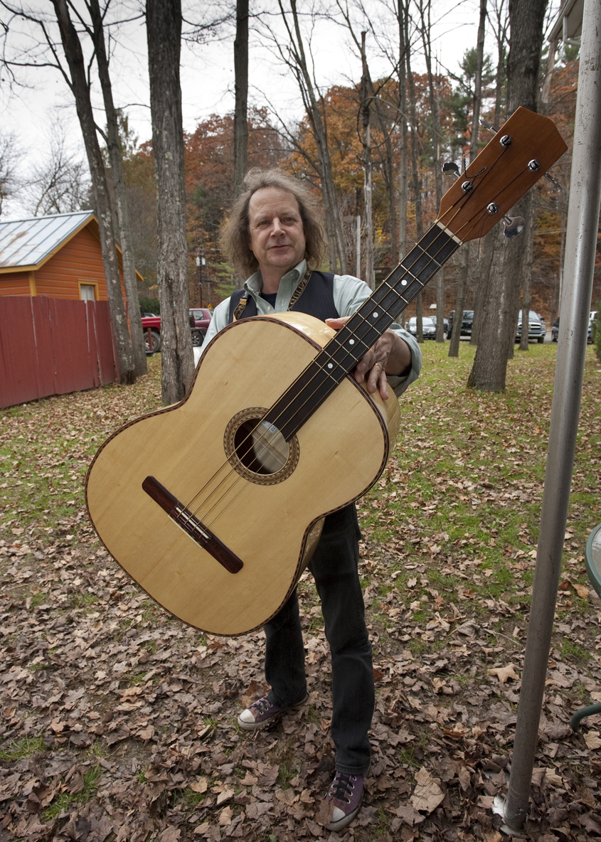 Aside from being around all those guitars (feeing so in my element) and meeting their builders, an amazing thing happened. I had a chance encounter with John Sebastian (The Lovin Spoonful) himself. While going out to my vehicle I met him and just as a hoot asked him if he would take a look at a Maple Parlor Guitar that I built.