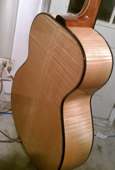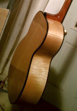 Another instrument almost near completion is this quilted maple large bodied guitar.