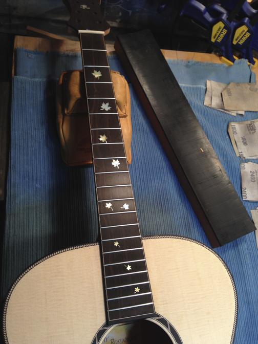 In progress right now is another parlor guitar. This instrument is about 2/3 through the process.