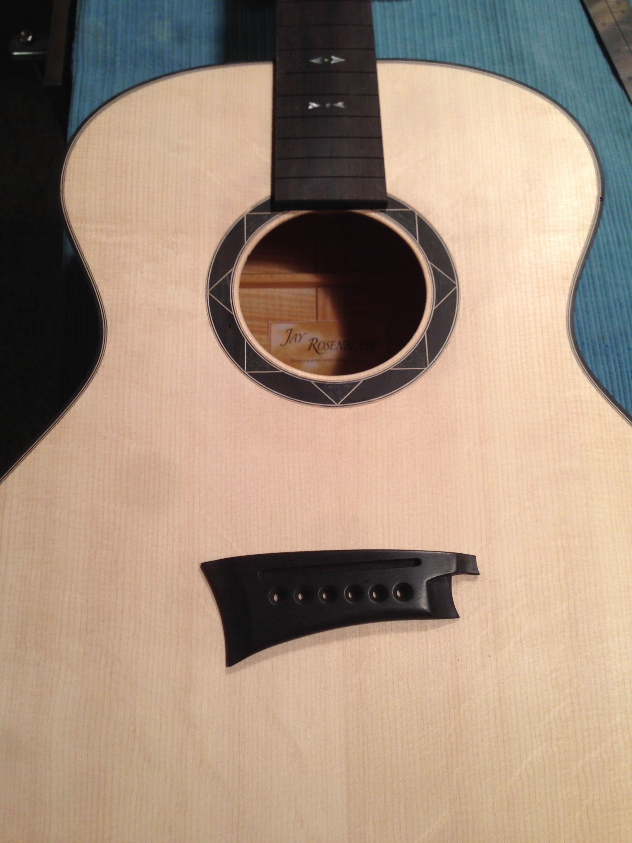 This guitar is currently in the finishing process. I hope to have it ready for the Woodstock Luthiers Showcase in October.