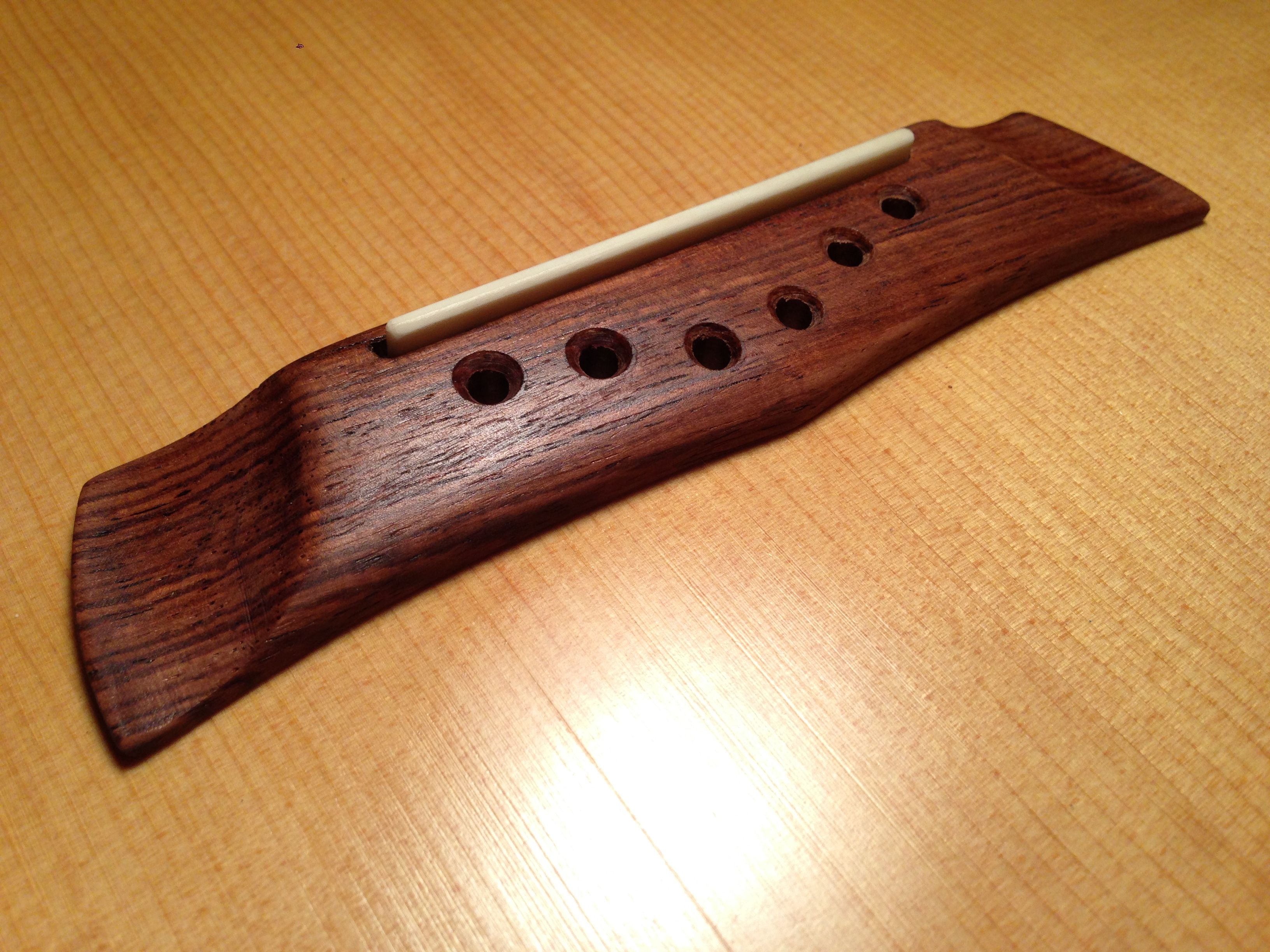 Published March 5, 2015 at 3264 × 2448 in Building a Style 3 Weissenborn with Sitka soundboard by Jay Rosenblatt, Luthier The bridge made from Honduran Rosewood. Carved to be similar to the original design, attached with hide glue. ‹ Return to post Leave a comment Cancel reply Δ