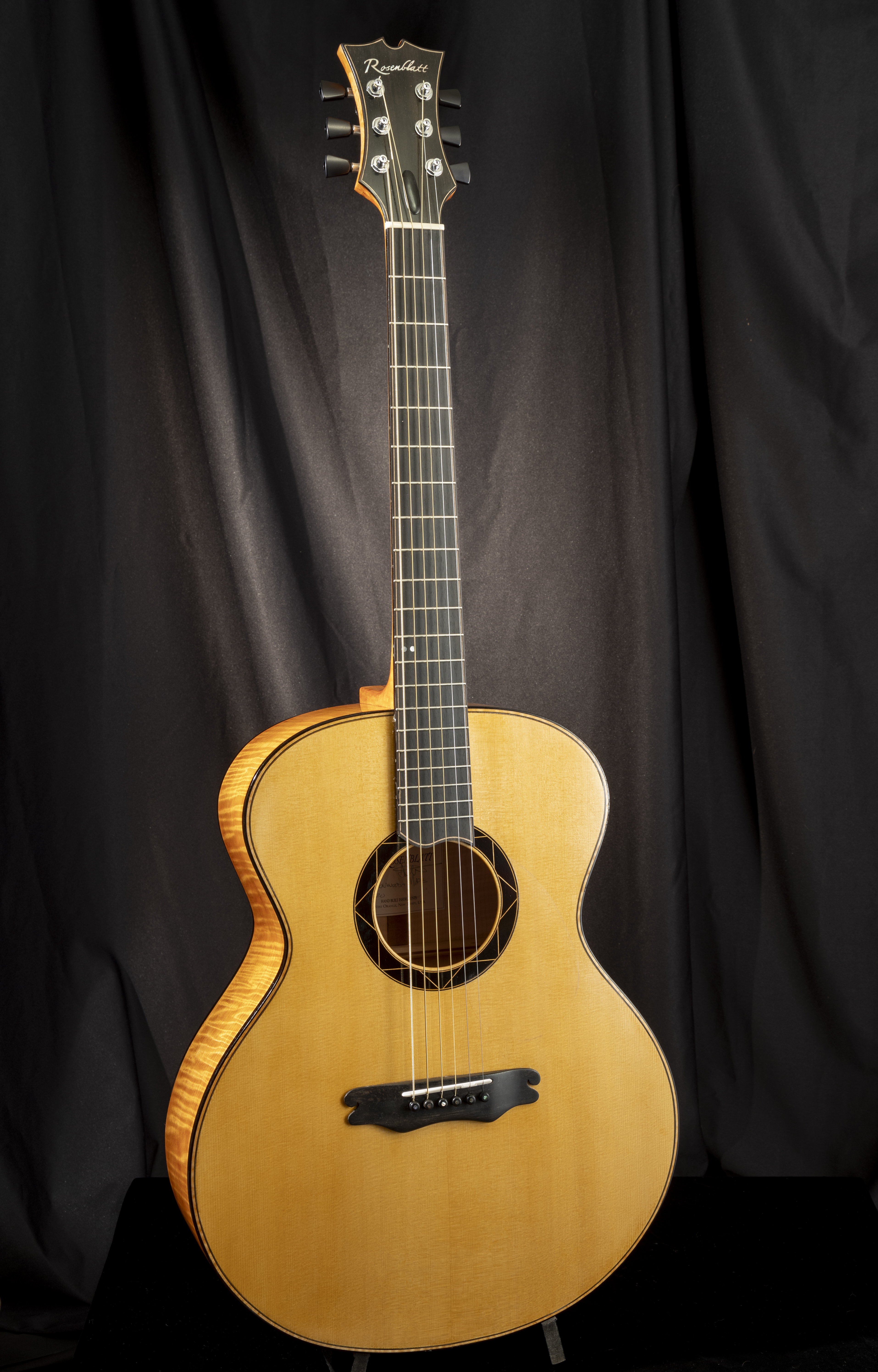 - Hand laid-up wide wood purfling and ebony binding