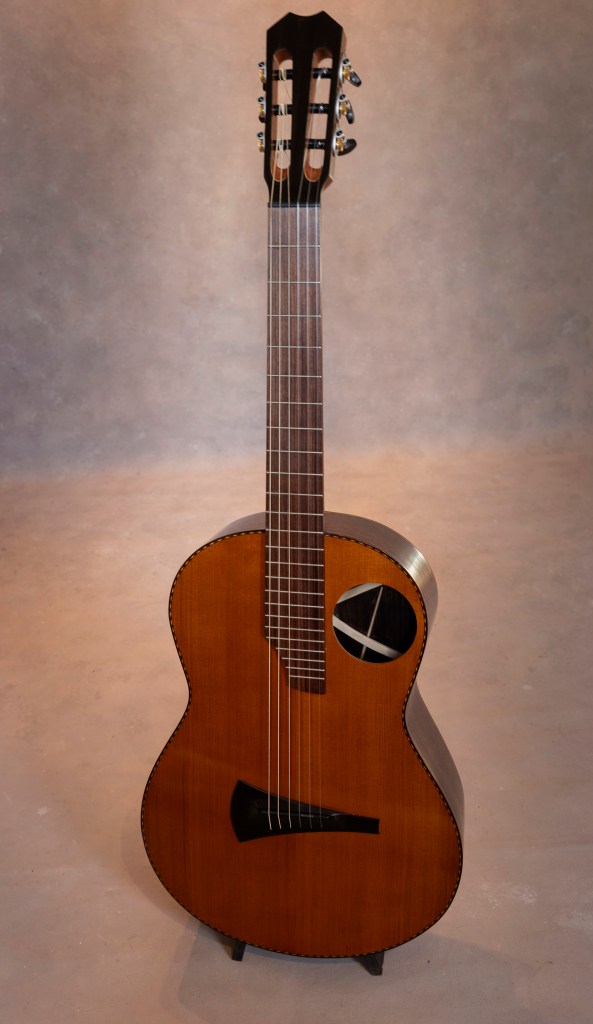 This is an absolutely beautiful sample of my work and a fine guitar. Pair this with A rosewood guitar in Duets and you will have an instrument that stands out and sings. Just a joy to play..